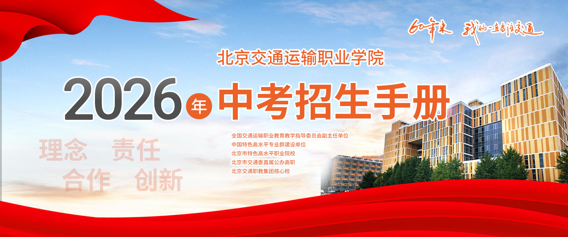 北京交通运输职业学院始建于1960年。在近60年的成长历程中,从未停止过探索创新的脚步。学院是北京市交通委直属唯一公办全日制普通高等职业院校。立足交通行业、服务首都经济。
